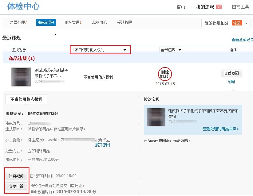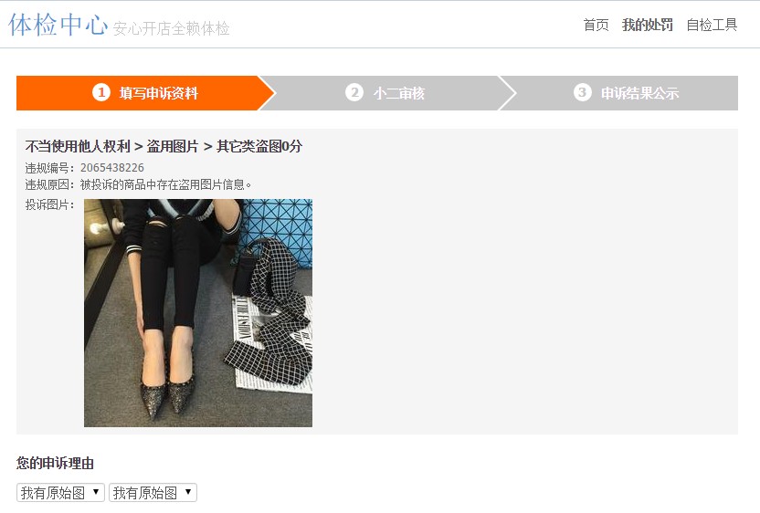 被盗图处罚后怎么申诉? 大文 五月 3, 2016 举报管理 0 条评论 2058 围观 亲,处罚后的15天内有1次申诉机会,申诉入口:淘宝网首页点击右上方【卖家中心】-【体检中心】-【违规记录】中找到对应盗图处罚进行申诉。 点击“我要申诉”选择申诉理由并提交申诉凭证哦~ 若投诉图是您自己拍摄,您需要提供的凭证如下: 材料1:1张举证图,即投诉图对应的原始拍摄图,图片格式JPG\JPEG,文件大小在5M以内。 材料2:2张以上套图花絮图(什么是套图花絮图?) 材料3:如您的商品类目在“男装\女装\童装”内,且图片中含有真人露脸模特,请提供拍摄证明(什么是拍摄证明?)