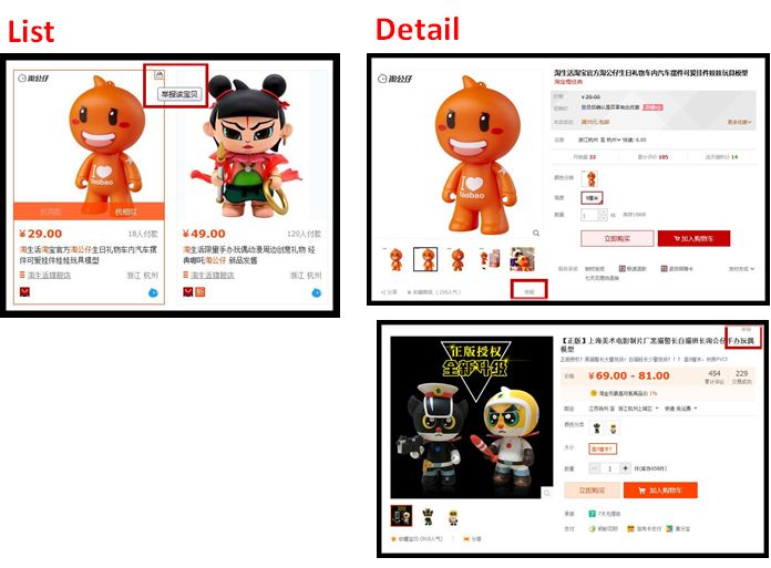 - 商品详情页面,淘宝商品在商品详情页右上角点击”举报”进入举报页面,天猫商品在详情页主图右下方点击”举报”进入举报页面哦。