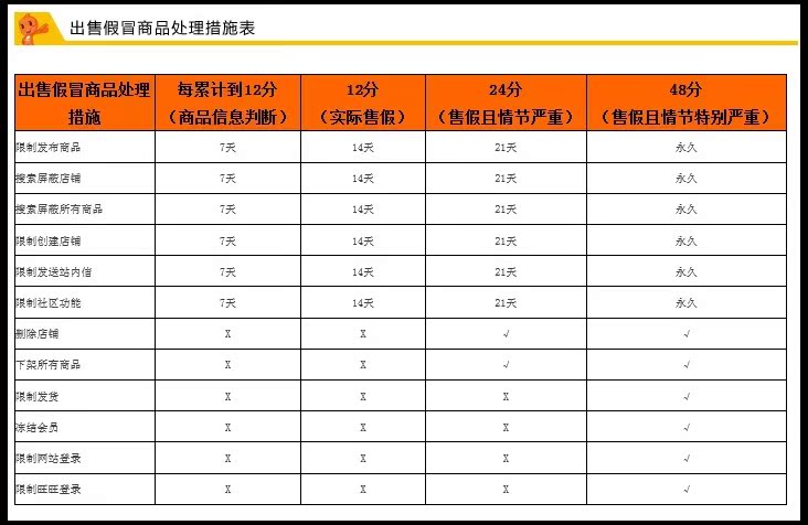 店铺被假货处罚,会屏蔽多少天?去哪里参加考试? 大文 五月 8, 2016 账户处罚 0 条评论 1480 围观 账户严重违规扣分累计达到12分店铺屏蔽7天,一次性扣分12分店铺屏蔽14天。 店铺扣分24分屏蔽 21天。如果达到48分店铺将永久冻结。 假货处罚店铺屏蔽结束后无需进行考试。 《淘宝网各项违规扣分汇总》详情请点此查看