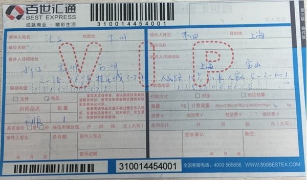 凭证清晰并完整且与交易信息一致:单号、收件人信息(收件人电话号码、收件地址、收件人姓名)、发件人信息等。 - 快递底单照片