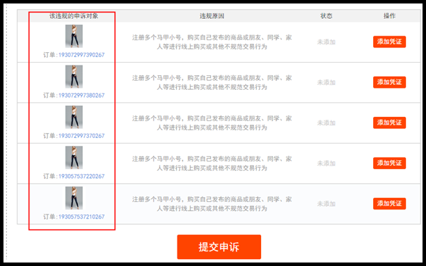 问:我点击我要申诉之后,发现有很多订单,这些都需要添加凭证吗?